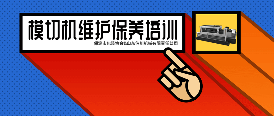 為更好的服務(wù)于協(xié)會(huì)會(huì)員單位,促進(jìn)保定市包裝產(chǎn)業(yè)的發(fā)展,提升企業(yè)員工的業(yè)務(wù)水平,增強(qiáng)企業(yè)競(jìng)爭(zhēng)力;保定市包裝協(xié)會(huì)將聯(lián)合山東信川機(jī)械有限責(zé)任公司舉辦技術(shù)培訓(xùn)。>>>>培訓(xùn)主題:平壓平模切機(jī)維護(hù)保養(yǎng)培訓(xùn)(暨印后新設(shè)備新...