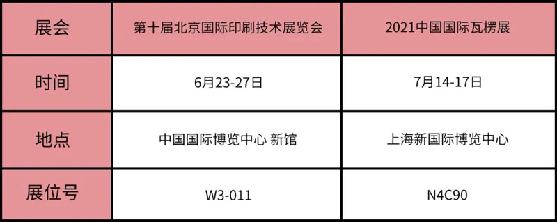 踏著奮進的腳步--信川機械即將上演展會“雙城記”,于6月23日、7月14日分別參加第十屆北京國際印刷技術(shù)展覽會、2021中國國際瓦楞展。屆時,信川將攜眾多暢銷產(chǎn)品亮相,歡迎新老朋友蒞臨!第十屆北京國際印刷技術(shù)展覽會北...