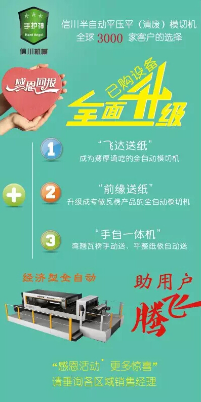 信川堅持以客戶需求為設(shè)備研發(fā)出發(fā)點(diǎn),針對不同客戶的工藝需求,為其提供“模切機(jī)超市”定制化的購機(jī)模式。其中“手護(hù)神”系列半自動平壓平模切機(jī)一度產(chǎn)銷量占全國同系列的50%,成為中國最暢銷的平壓平模切機(jī)。