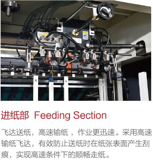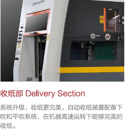 6.自動收紙裝置配備下吹和平吹系統(tǒng),在機器高速運轉(zhuǎn)下能夠完美的收紙。